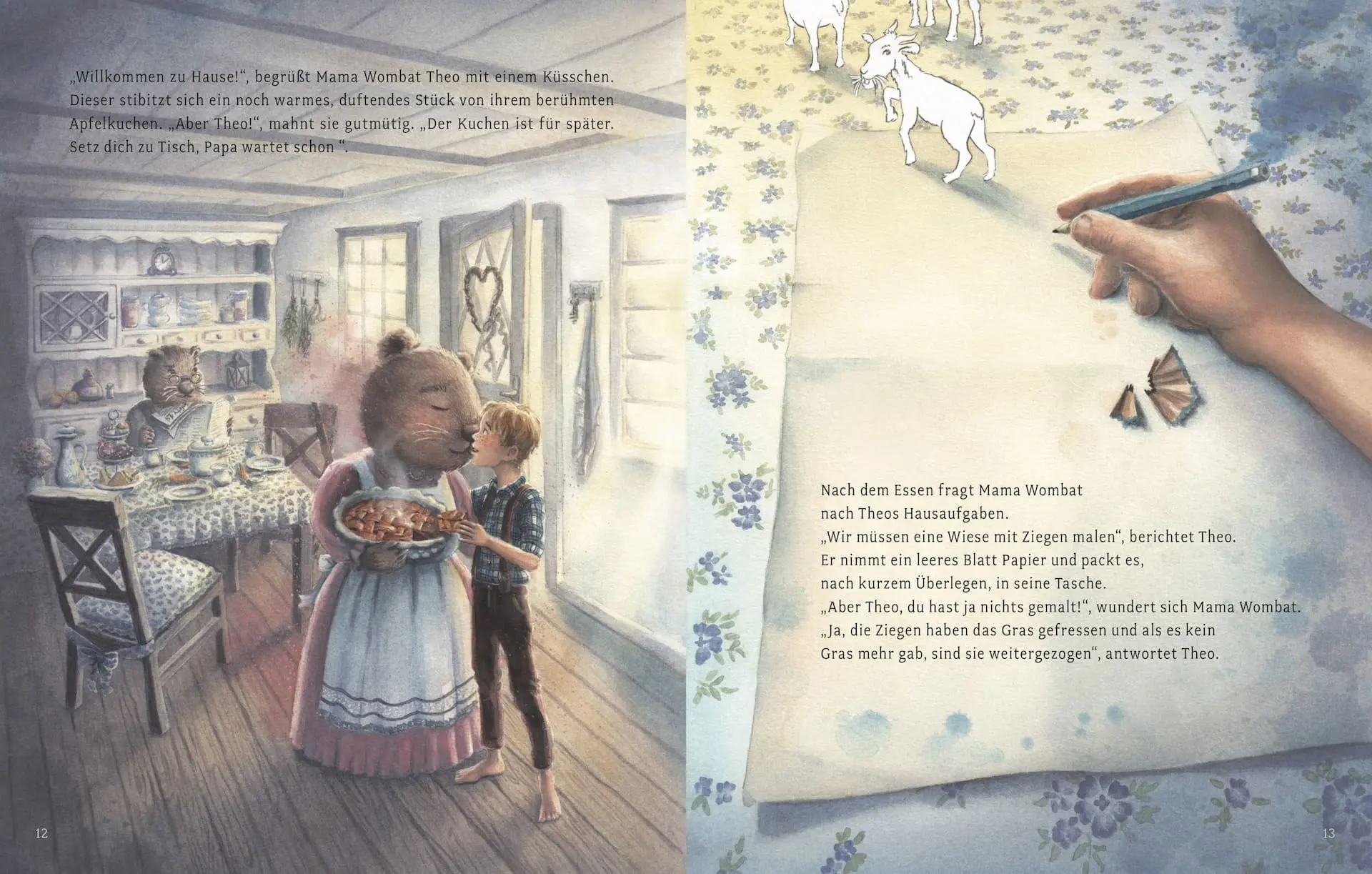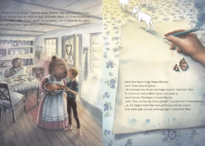 Theo ist verzweifelt. Alle seine Freunde haben besondere Talente und Fähigkeiten. Sogar seine beste Freundin Emmi hat schon einen großen Lebenstraum. Theo jedoch träumt nur von Mama Wombats herrlich duftenden Mittagessen. Er fühlt sich, als hätte sein Leben weder Sinn noch Ziel.